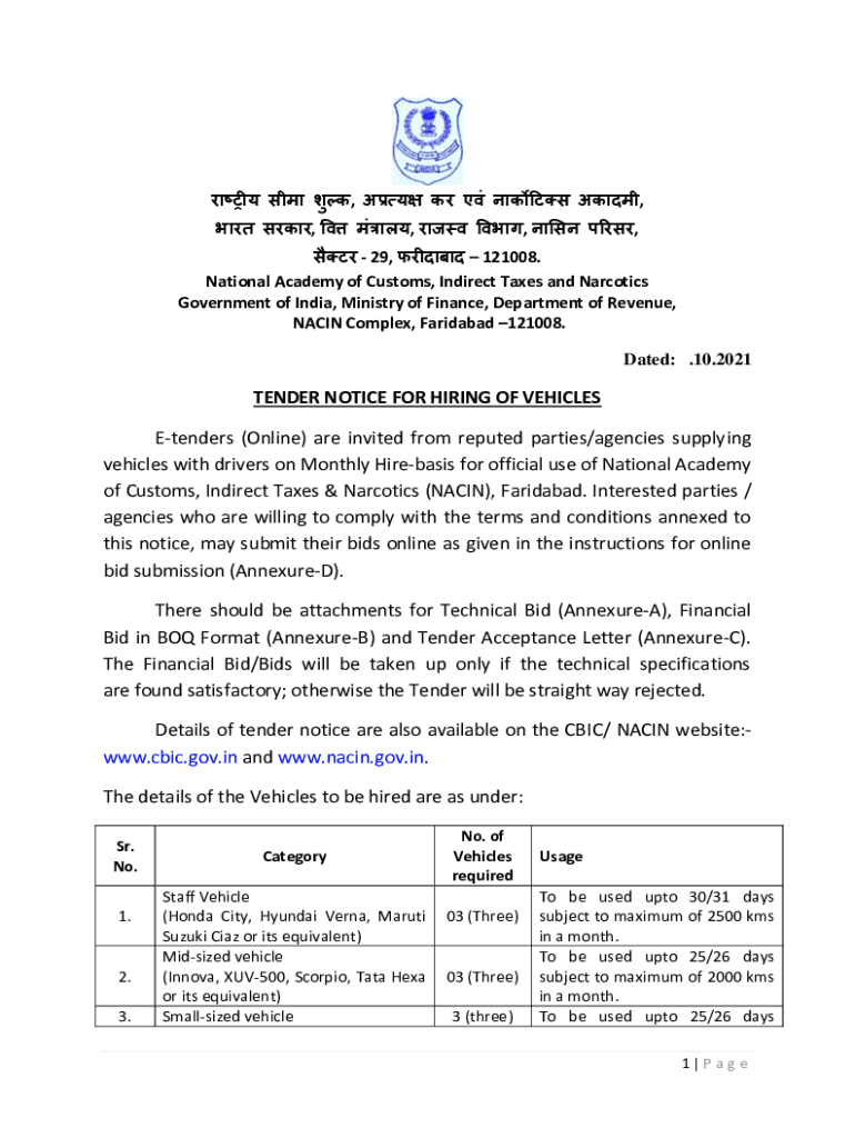 Get the free NATIONAL ACADEMY OF CUSTOMS, INDIRECT TAXES & NARCOTICS ...