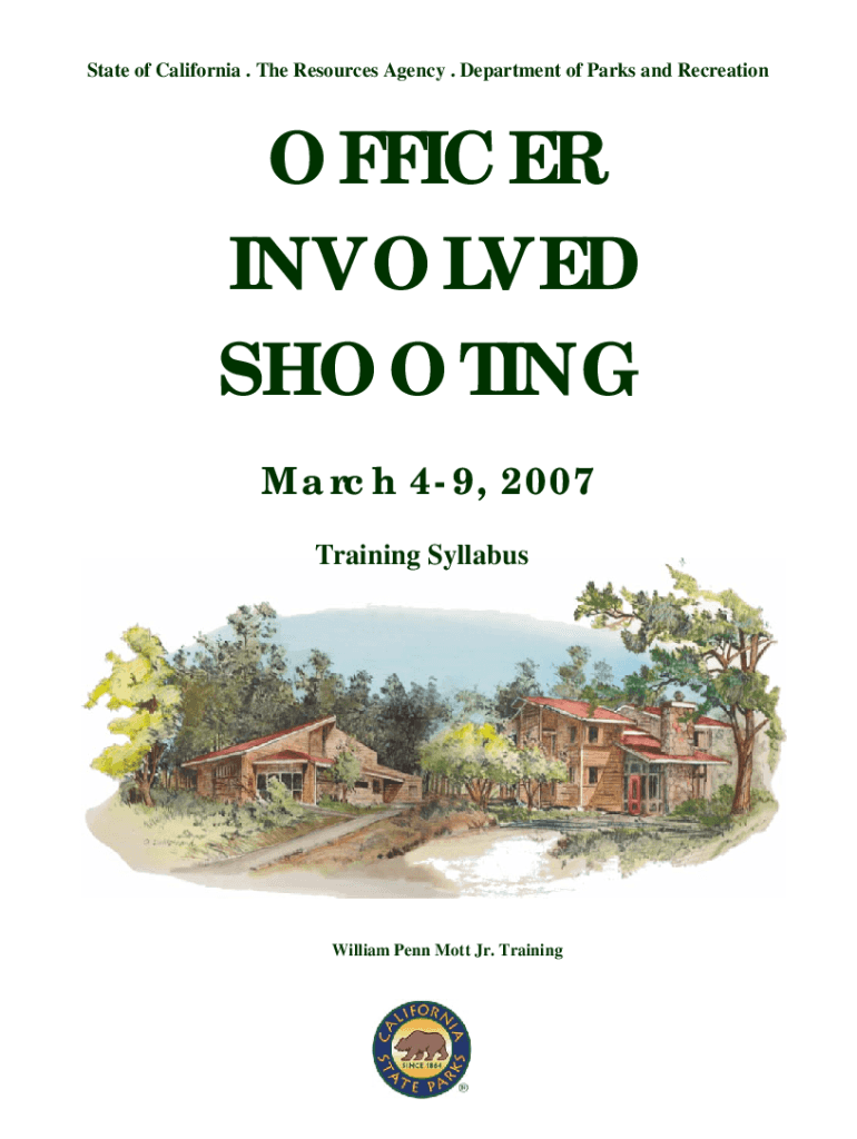 State of California. The Resources Agency. Department of Parks and RecreationOFFICER INVOLVED SHOOTING March 49, 2007 Training Syllabus William Penn Mott Jr. TrainingState of CaliforniaMemorandum