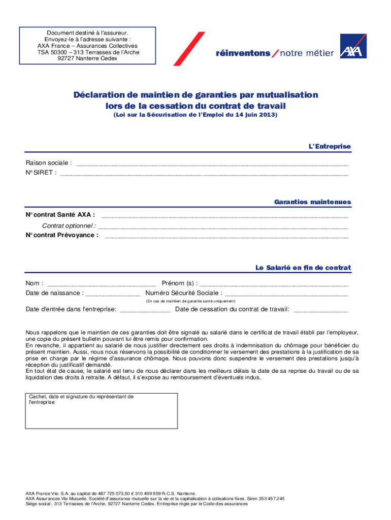 Document destiny l\'assurer. Enjoyable lacrosse private : AXA France Assurances Collectives TSA 50300 313 Terr asses DE larch 92727 Parterre CedexDclaration de maintain DE guaranties par mutualization