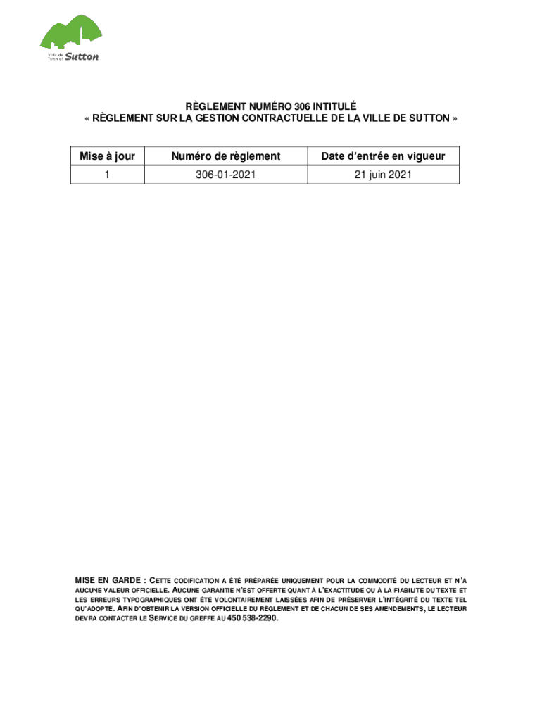 ELEMENT NU MRO 306 UNTIL ELEMENT SUR LA SECTION CONTRACTUALLY DE LA VILLA DE SUTTON Mile journo de rglementDate denture en vigueur130601202121 join 2021MISE EN GARDEN : BETTE CODIFICATION A T PREPARE