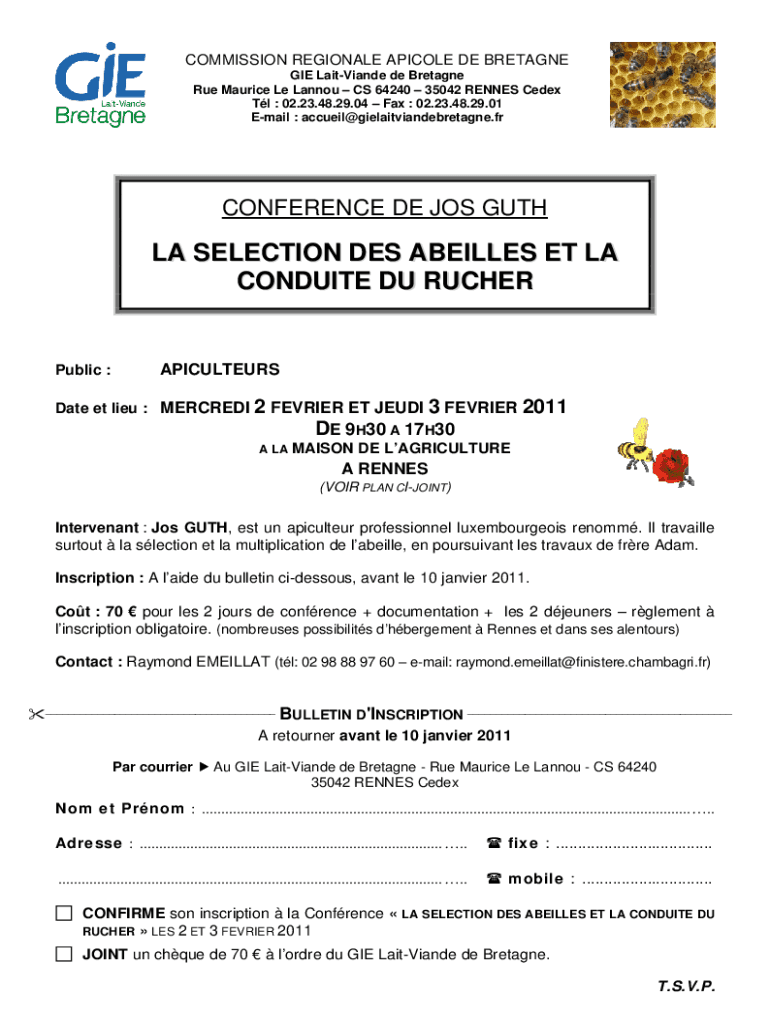 COMMISSION REGIONAL NICOLE DE BREANNE GIE Latvian de Bretagne Rue Maurice Le Cannot CS 64240 35042 RENNES CEDEX Tl : 02.23.48.29.04 Fax : 02.23.48.29.01 Email : accueil@gielaitviandebretagne.frCONFERENCE