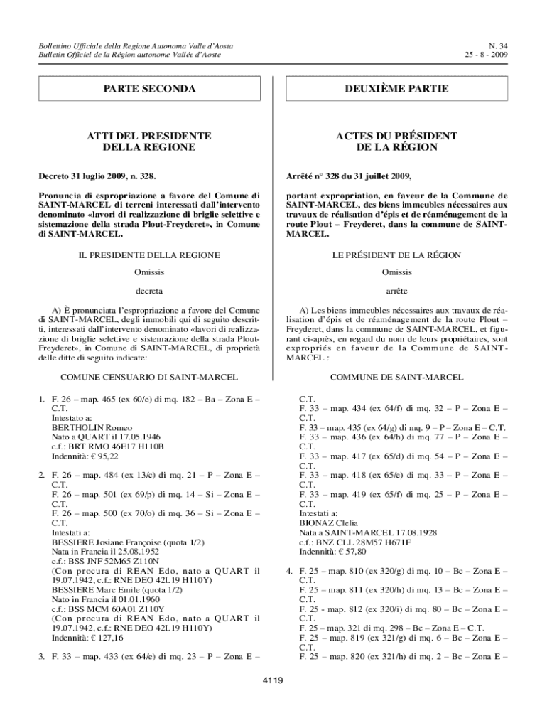 Collection Official Della Region Autonomy Value data Bulletin Official DE la Region autonomy Value Austen. 34 25 8 2009PARTE SECONDADEUXIME PARTIEATTI DEL PRESIDENT DELLA REGIONEACTES DU PRESIDENT