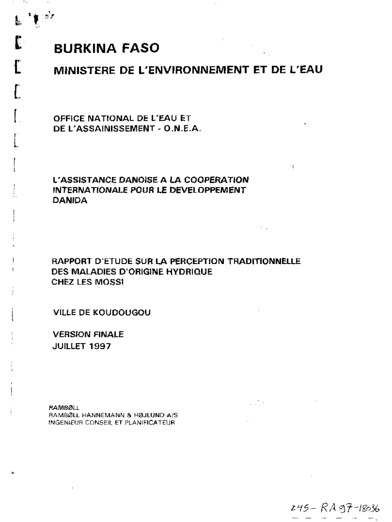 BURNING FASOLMINISTERE DE L\'ENVIRONMENT ET DE L\'EAU[OFFICE NATIONAL DE L\'EAU ET DE L\'ASSAINISSEMENT O.N.E.A.L\'ASSISTANCE NOISE À la COOPERATION INTERNATIONALE POUR LE DEVELOPMENT DANIDARAPPORT