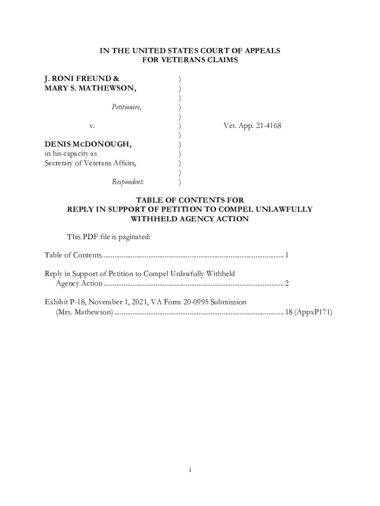 IN THE UNITED STATES COURT OF APPEALS FOR VETERANS CLAIMS J. TONI FREUD & MARY S. MATHEWSON, Petitioners, v. DENIS McDonough, in his capacity as Secretary of Veterans Affairs, Respondent.) )))))))))))Vet.