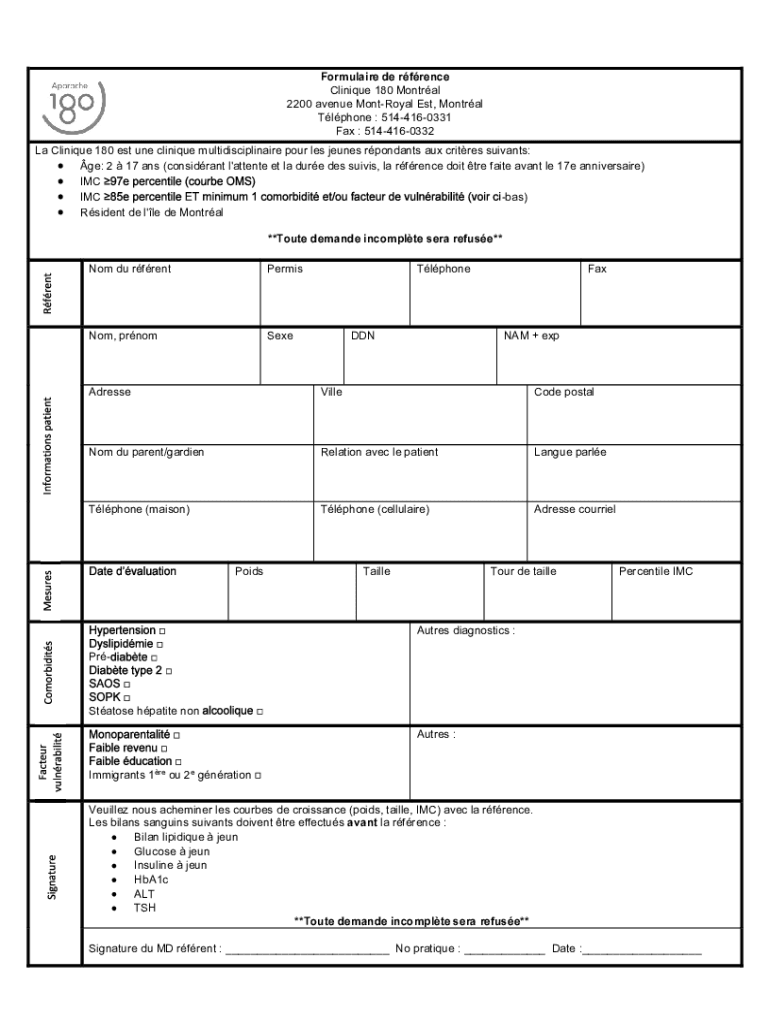 Get the free Formulaire de rfrence **Toute demande incomplte sera ...