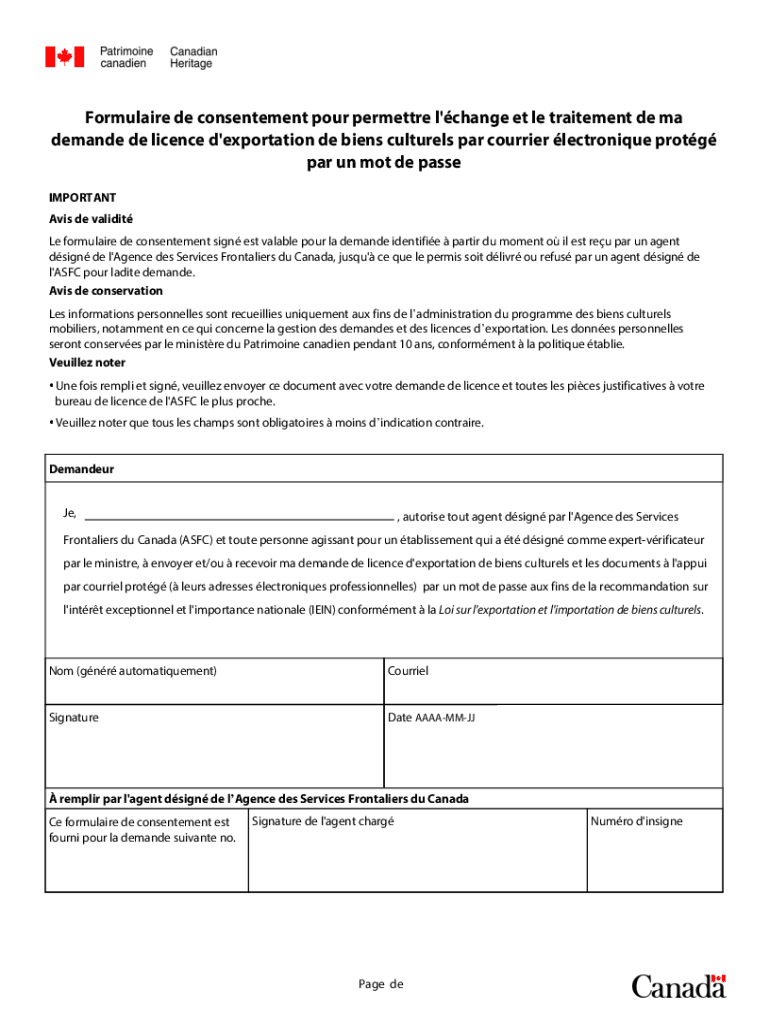 The formulaire de consentement pour can be filled out by providing the necessary information and signatures as required by the relevant authorities.