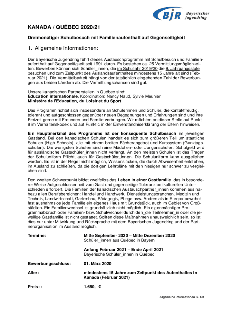 CANADA / QUEBEC 2020/21 Dramatizer Schulbesuch MIT Familienaufenthalt AUF Gegenseitigkeit1. Allegiance Informationen: Her Bayerische Unending fort daises Austauschprogramm MIT Schulbesuch UND Familienaufenthalt