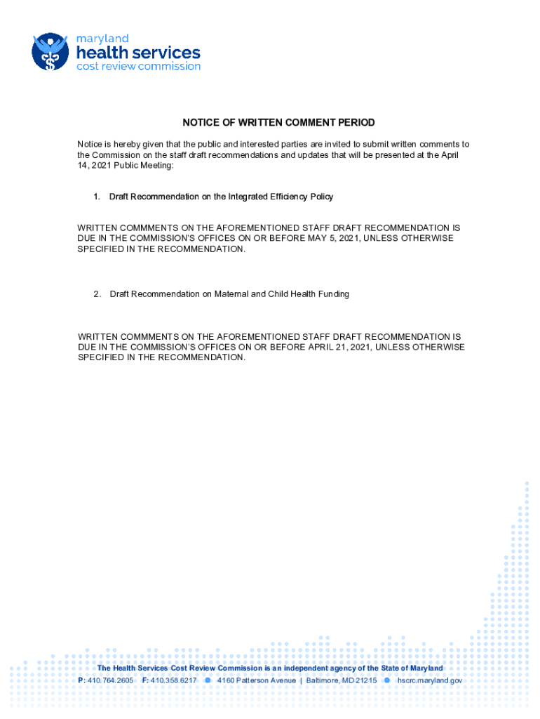 Get the free NOTICE OF WRITTEN COMMENT PERIOD - Maryland