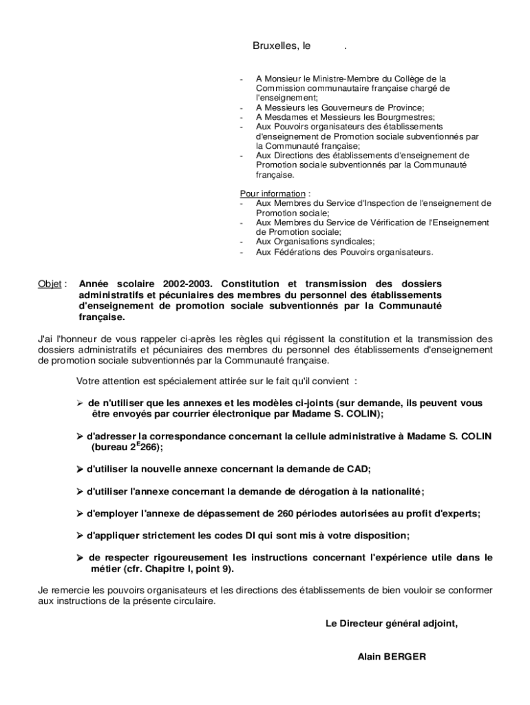Get the free A Monsieur le Ministre, Membre du Collge de la A Madame ...