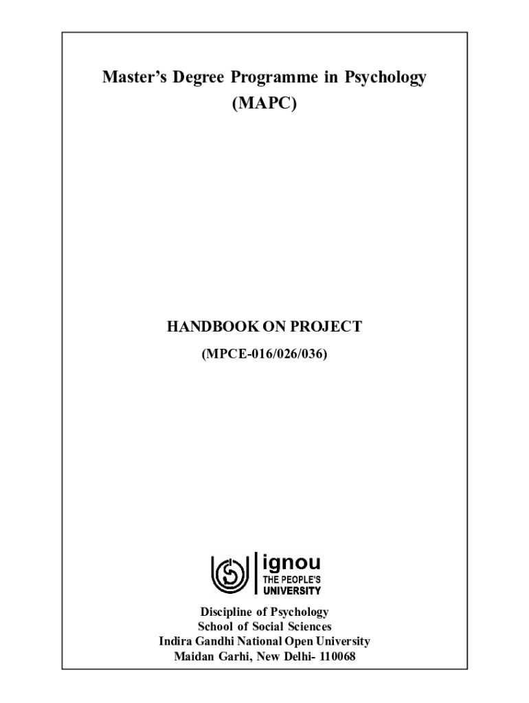 Master’s Degree Program in Psychology (MAP)HANDBOOK ON PROJECT (MPCE016/026/036)Discipline of Psychology School of Social Sciences Indira Gandhi National Open University Maidan Gar hi, New Delhi
