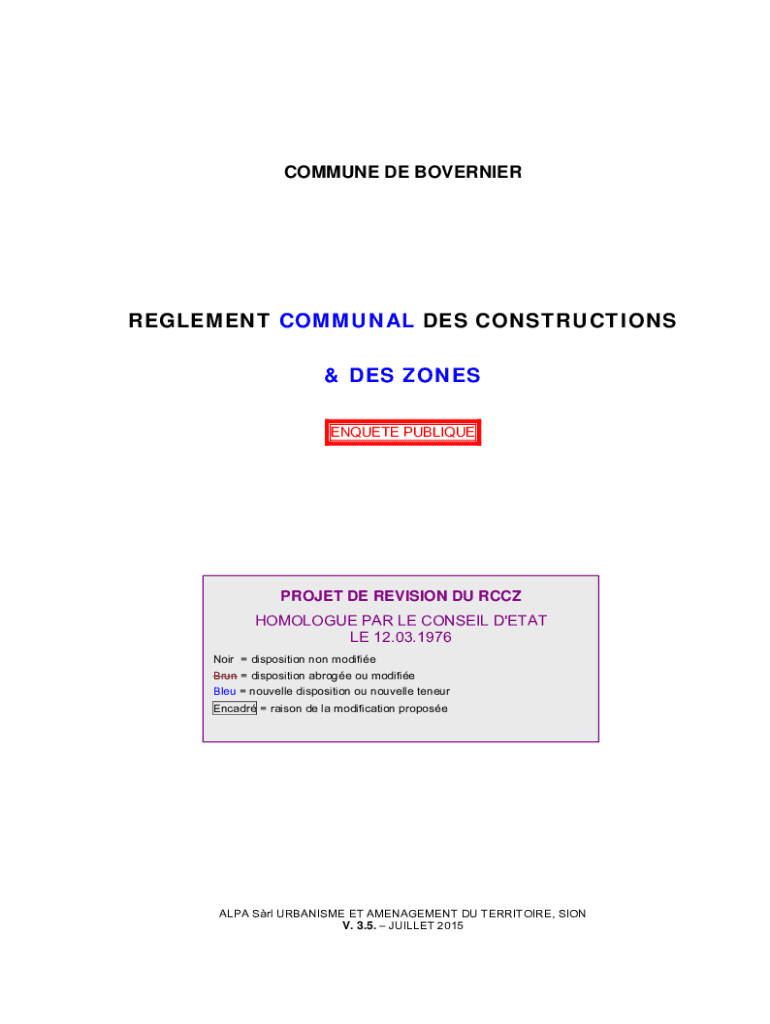Get the free www.bovernier.chdatadocumentsREGLEMENT COMMUNAL DES CONSTRUCTIONS & DES ZONES