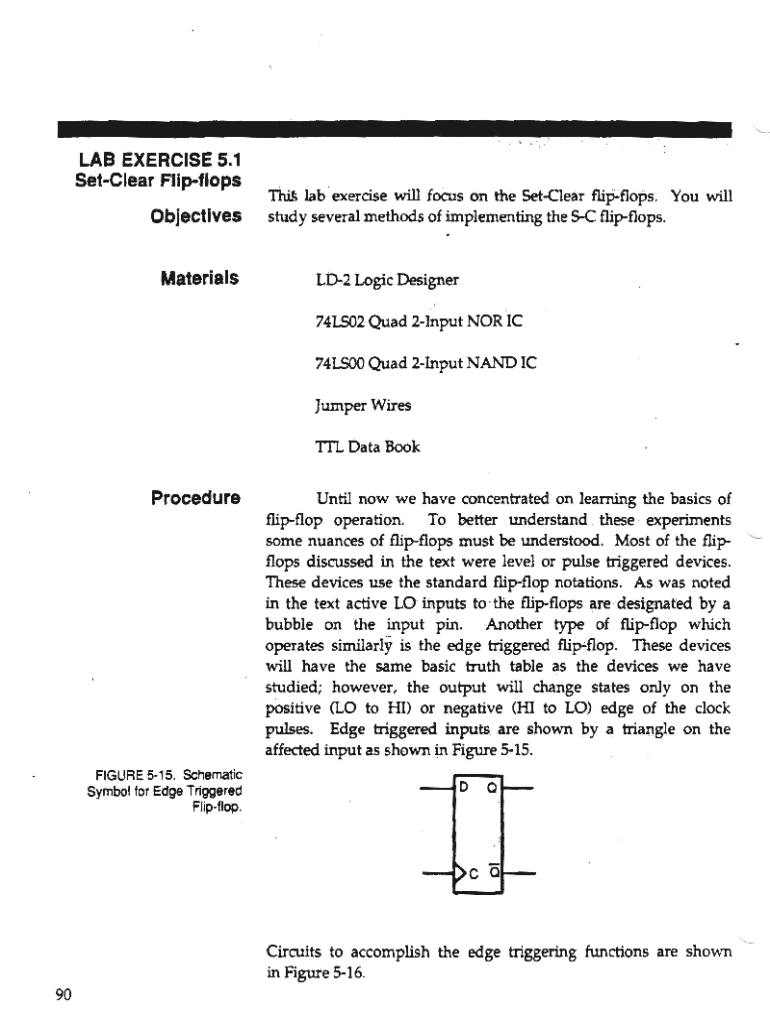 .LAB EXERCISE 5.1SetClear FlipflopsObjectivesMaterials. \' lab \' exercise will focus on the Settlers flip.;f1ops. You will study several methods of implementing the SC flip-flops.LD2 Logic Designer