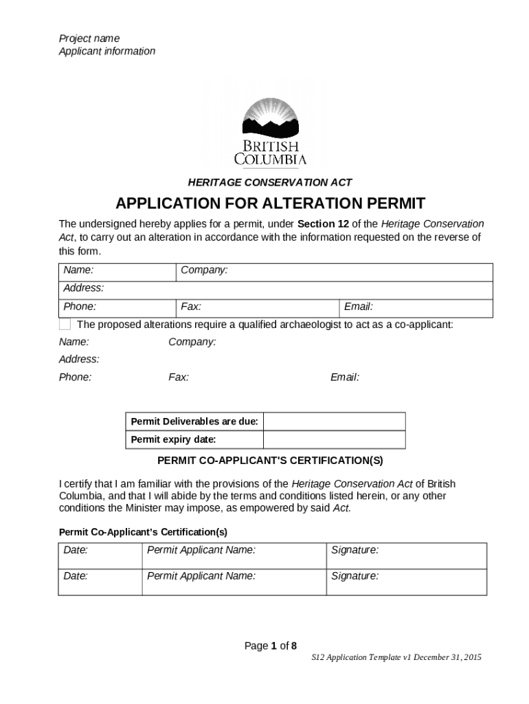 What is HERITAGE PERMIT APPLICATION - loyalist.ca Form?