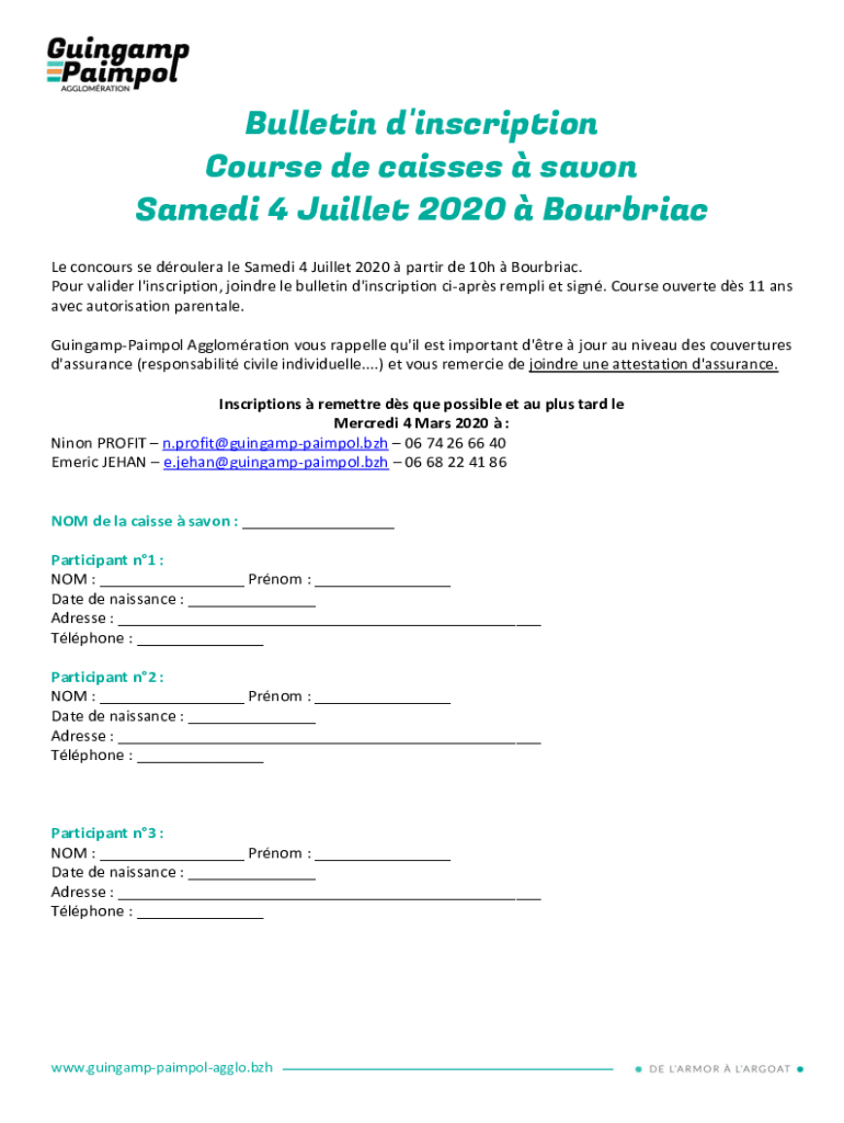 Bulletin d\'inscription Course DE cases Saxon Named 4 Bullet 2020 Bourbriac Le concourse SE drollery LE Named 4 Bullet 2020 part de 10h Bourbriac. Pour valid her l\'inscription, joiner LE bulletin