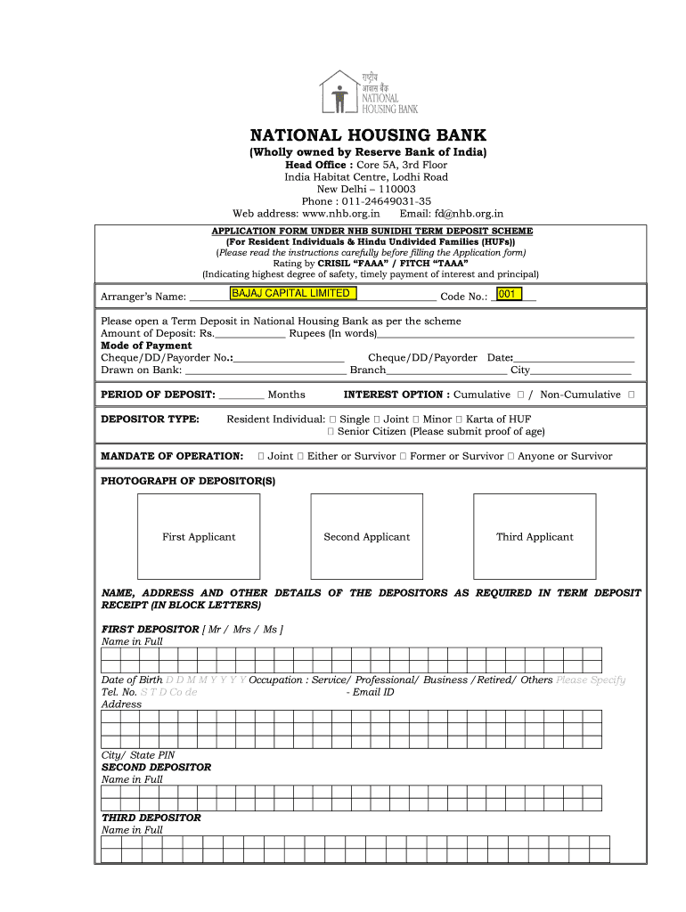 NATIONAL HOUSING BANK (Wholly owned by Reserve Bank of India) Head Office : Core 5A, 3rd Floor India Habitat Center, Lodi Road New Delhi 110003 Phone : 011-24649031-35 Web address: www.nhb.org.in