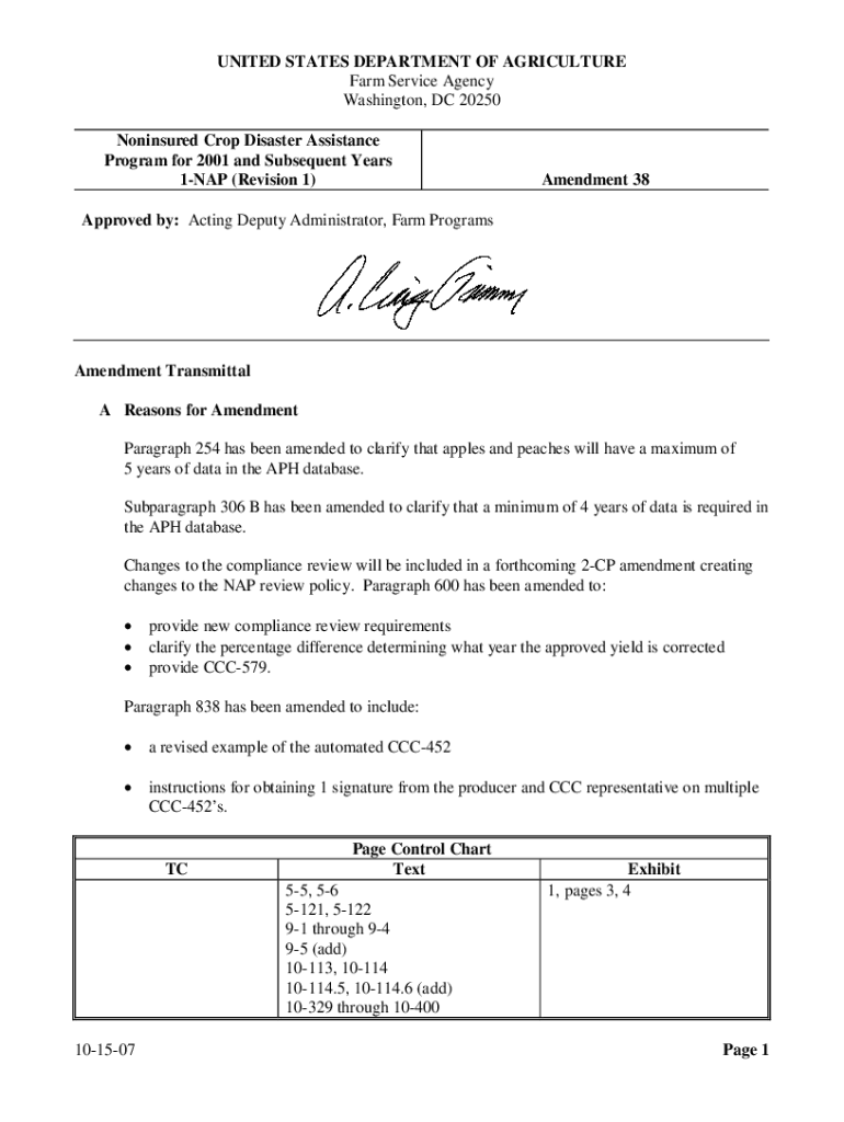 UNITED STATES DEPARTMENT OF AGRICULTURE Farm Service Agency Washington, DC 20250 Noninsured Crop Disaster Assistance Program for 2001 and Subsequent Years 1NAP (Revision 1)Amendment 38Approved by: