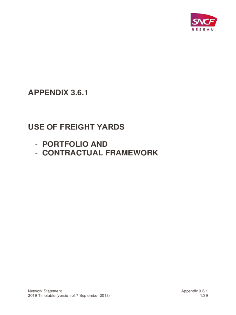 APPENDIX 3.6.1USE OF FREIGHT YARDS PORTFOLIO AND CONTRACTUAL FRAMEWORKNetwork Statement 2019 Timetable (version of 7 September 2018)Appendix 3.6.1 1/39CONTENTS FOREWORD ..........................................................................................................................