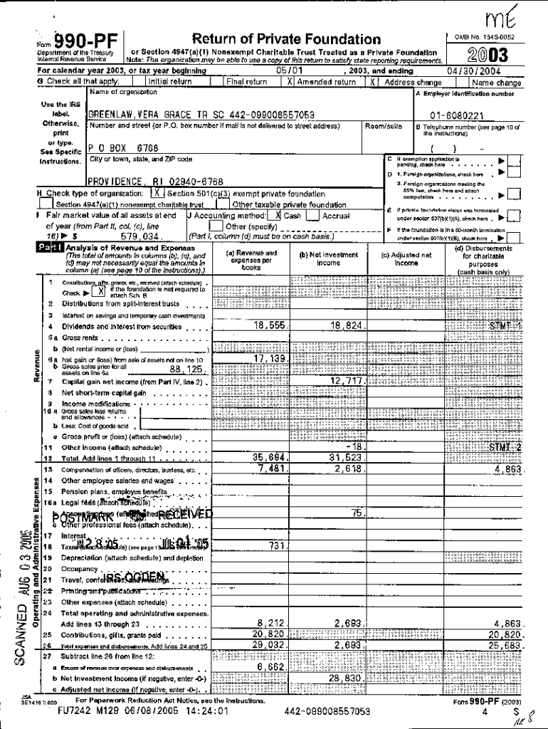 P011M\'9 90PFI 1OMB No. 15450052Return of Private Foundation2003a)(1) Nonexempt Charitable Trust Treated as a Private Foundation on may be able to use a copy of this return to satisfy state reporting