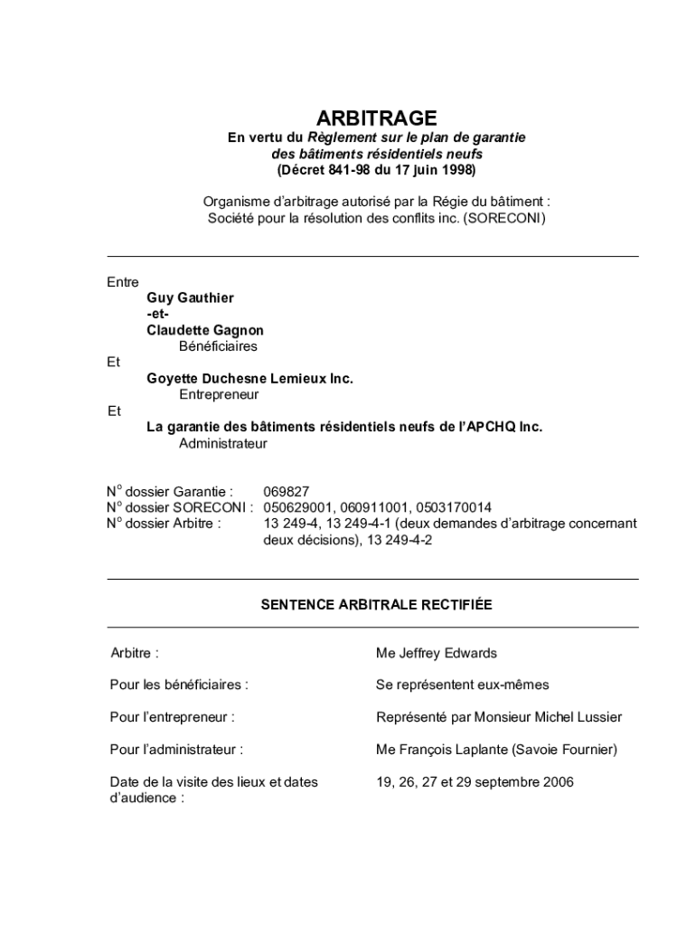 ARBITRAGE En vert Du Element SUR LE plan DE granite DES aliments residential Neuss (Crew 84198 Du 17 join 1998) Organism arbitrage actors par la GIE Du raiment : So cit pour la solution DES conflicts