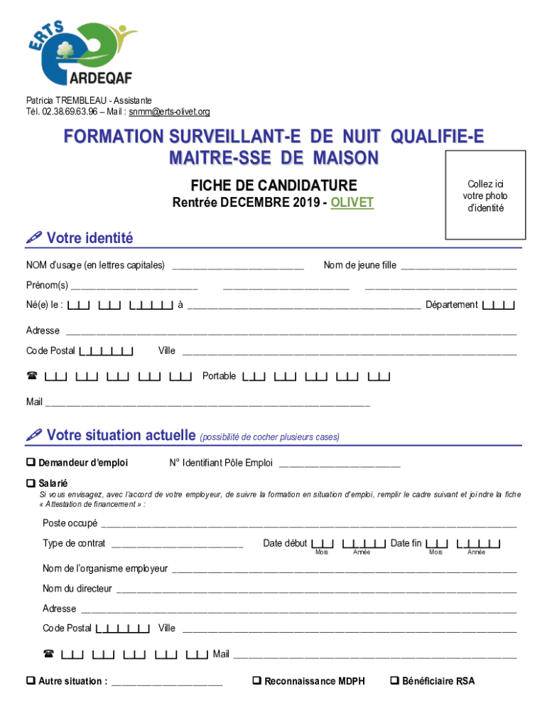 Patricia TREMBLE AU Assistance Tl. 02.38.69.63.96 Mail : snmm@ertsolivet.orgFORMATION SURVEILLANCE DEN UIT QUALIFIED WAITRESS DE MADISON FICHE DE CANDIDATURECollez ICI vote photo didentitRentre DECEMBER