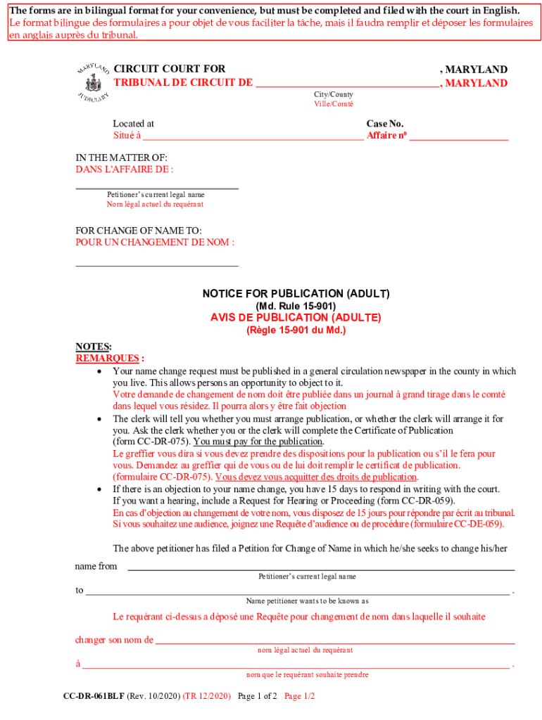Get the free NOTICE FOR PUBLICATION (ADULT) (Md. Rule 15-901) AVIS