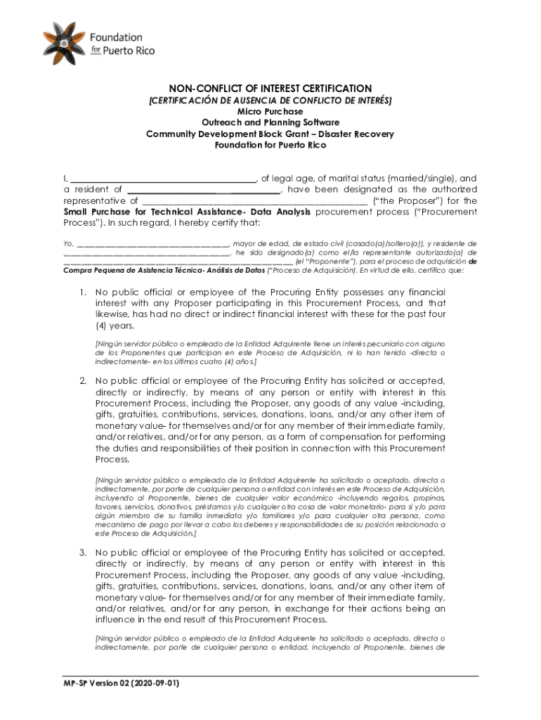 To fill out a non-conflict of interest certification, follow these steps:
