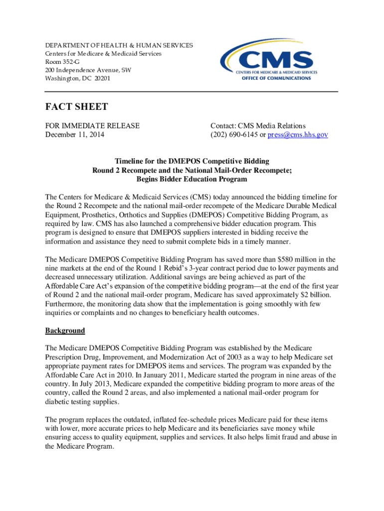 DEPARTMENT OF HEALTH & HUMAN SERVICES Centers for Medicare & Medicaid Services Room 352G 200 Independence Avenue, SW Washington, DC 20201FACT SHEET FOR IMMEDIATE RELEASE December 11, 2014Contact: