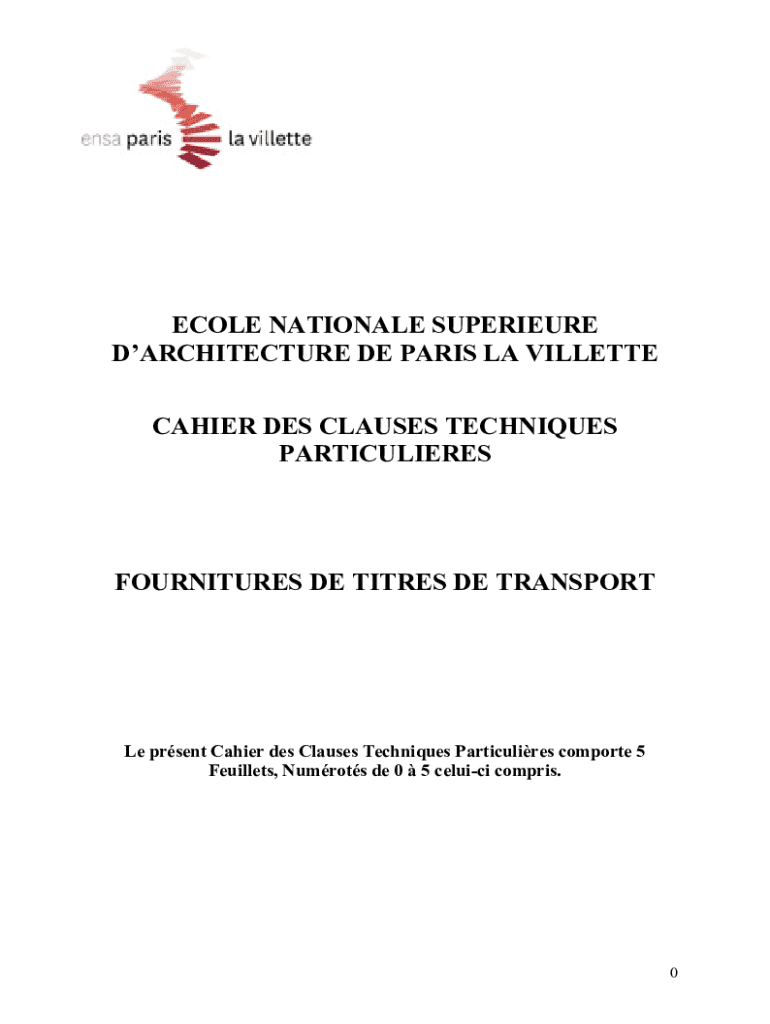 COLE NATIONAL SUPERIOR ARCHITECTURE DE PARIS LA GILLETTE CASHIER DES CLAUSES TECHNIQUES PARTICULIERESFOURNITURES DE TITLES DE TRANSPORT Le present Cashier DES Clauses Techniques Particulars comport