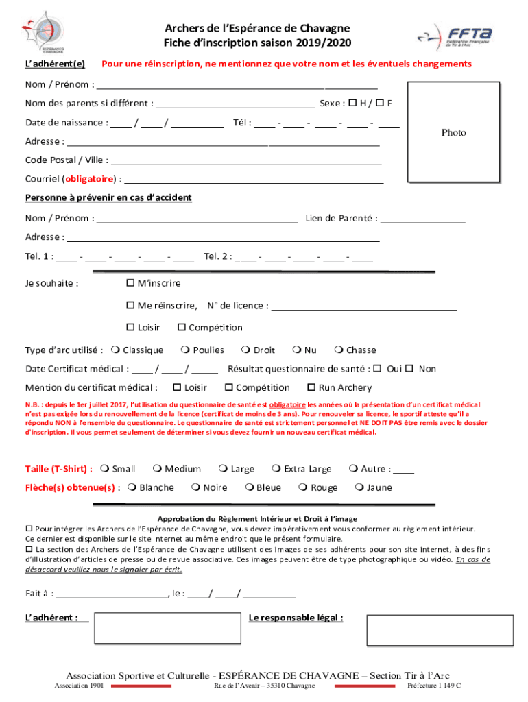 Get the free Archers de l'Esprance de Chavagne Fiche d'inscription saison ...