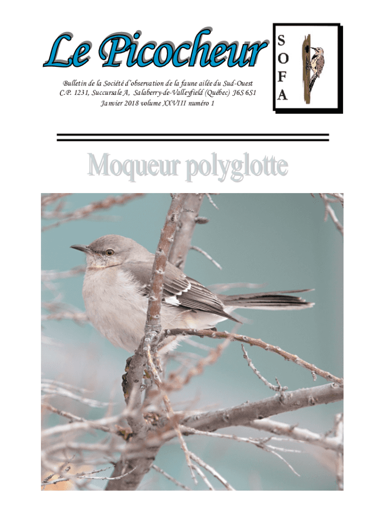 Bulletin de la So cit observation DE la fauna mile Du Sudsiest C.P. 1231, Succursale A, SalaberrydeValleyfield (Quebec) J6S 6S1 Janvier 2018 volume XXVIII humor 12Le Mot du President Bonjour, Le mot