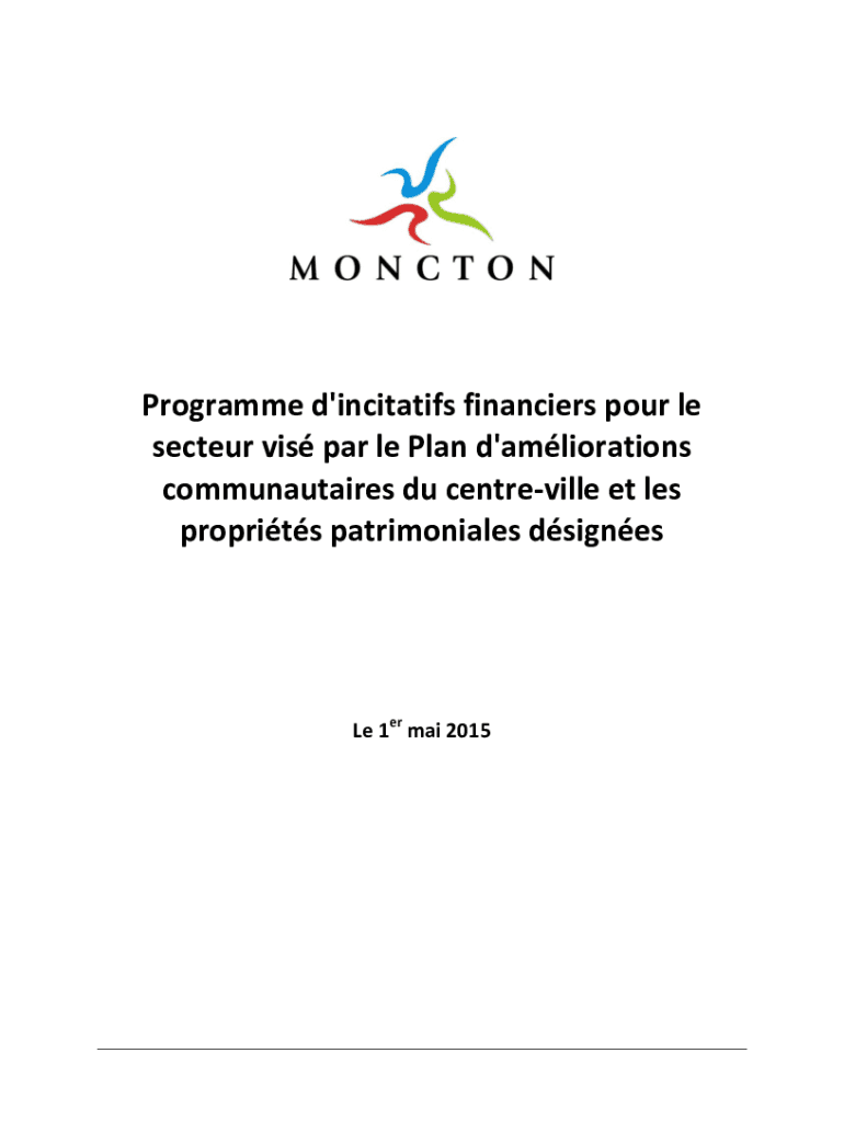 Program\'invitation financiers pour LE sector is par LE Plan d\'amelioration communautaires Du Centreville et LES profits patrimonial BS designee 1er Mai 2015Programme d\'invitation financiers Sector