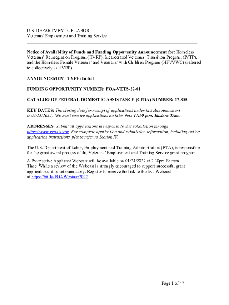 Get the free Page 1 of 47 U.S. DEPARTMENT OF LABOR Veterans' Employment ...