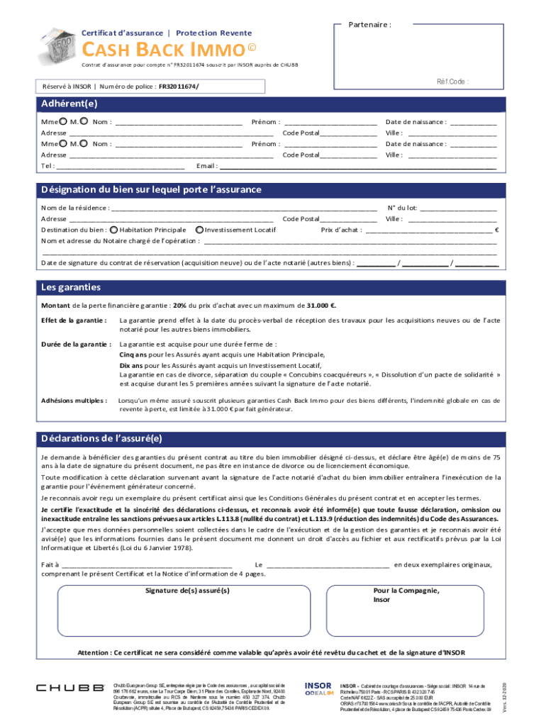 Partnered :Certificate assurance | Protection ReventeCASH BACK IMO Contract assurance pour compete n FR32011674 Sanskrit par INSTR APRS de Chubby. Code :Serve INSTR | Humor DE police : FR32011674/Adherent(e)