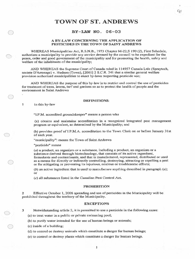 Get the free By-Law 0603 Concerning the Application of Pesticides ...