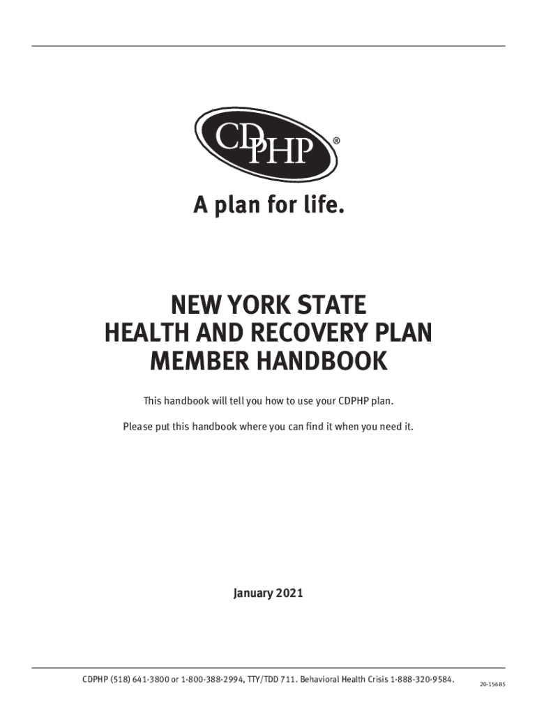 1NEW YORK STATE HEALTH AND RECOVERY PLAN MEMBER HANDBOOK This handbook will tell you how to use your CD PHP plan. Please put this handbook where you can find it when you need it. January 2021CDPHP(518)