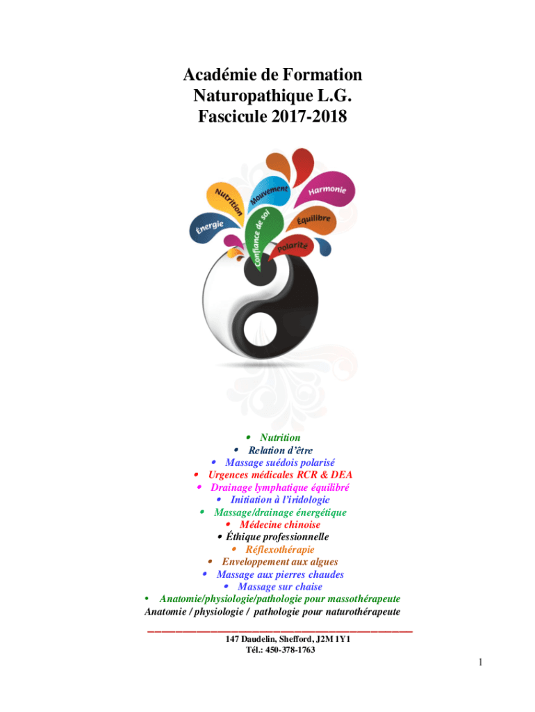 Academic DE Formation Naturopathic L.G. Fascicle 20172018 Nutrition Relation dare Massage studios Polaris Urgencies medicals RCR & DEA Drainage lymphatic quilter Initiation liridologie Massage/drainage