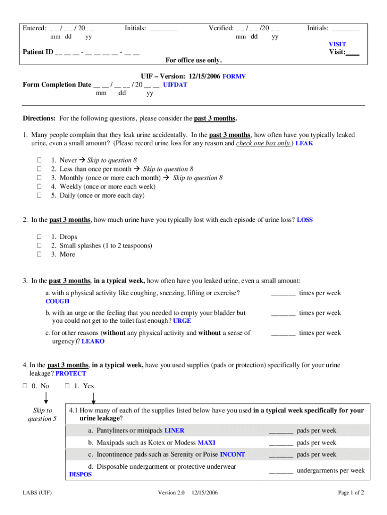 Entered: _ _ / _ _ / 20_ _ mm initials: ___verified: _ _ / _ _ /20 _ _ mm dd initials: ___ Visitation ID __ __ __ __ __ __ __ __ __Visit:___ For office use only. IF Version: 12/15/2006 FORM Completion