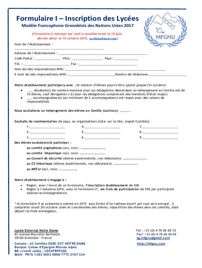 Formula ire I Inscription DES Laces Model Francophone Grenoble DES Nations Units 2017 (Formula ire enjoyed par mail is possible savant LE 30 join, denier DLA LE 15 October 2016, sg.mfgnu@gmail.com)