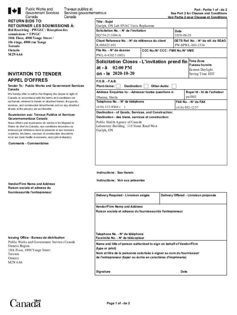 Get the free N VME PWL-0-43025 (003) Solicitation ... - buyandsell.gc.ca