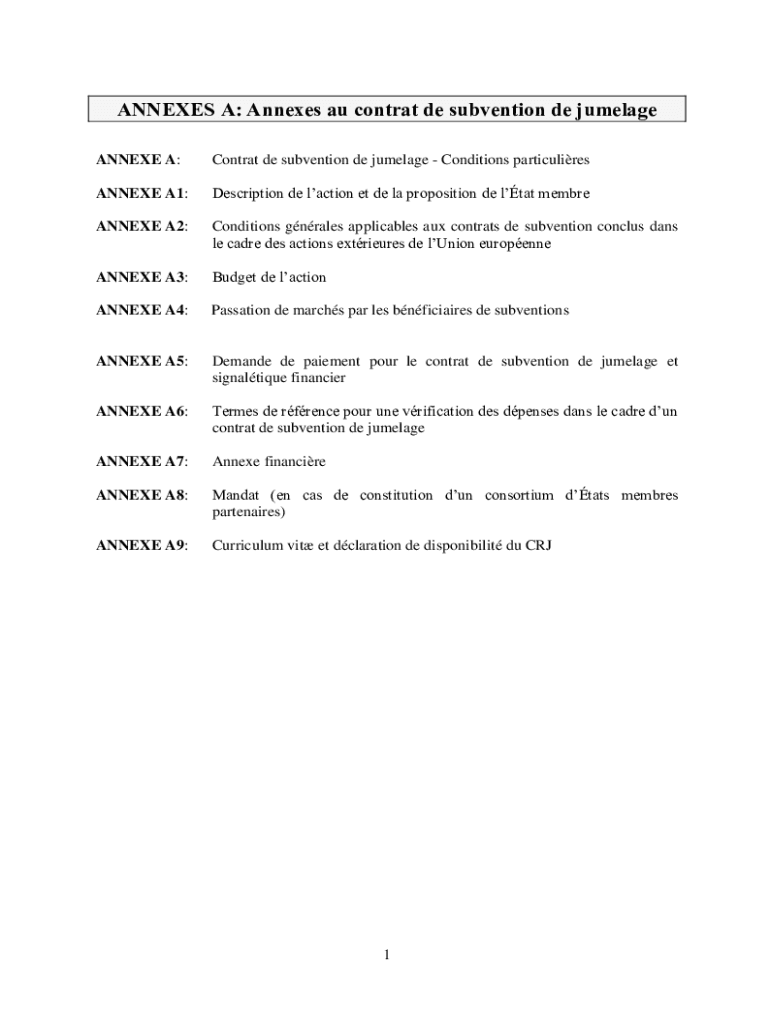 ANNEXES A: Annexes AU contract DE subvention DE fuselage ANNEXED A:Contract DE subvention DE fuselage Conditions particuliresANNEXE A1:Description DE action et de la proposition DE stat membreANNEXE