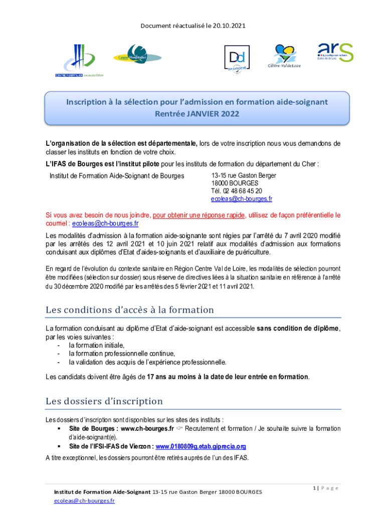 Document actually LE 20.10.2021Inscription la election pour admission en formation aidesoignant Renter JANVIER 2022Lorganisation de la election est departmental, loss DE vote inscription nous vows