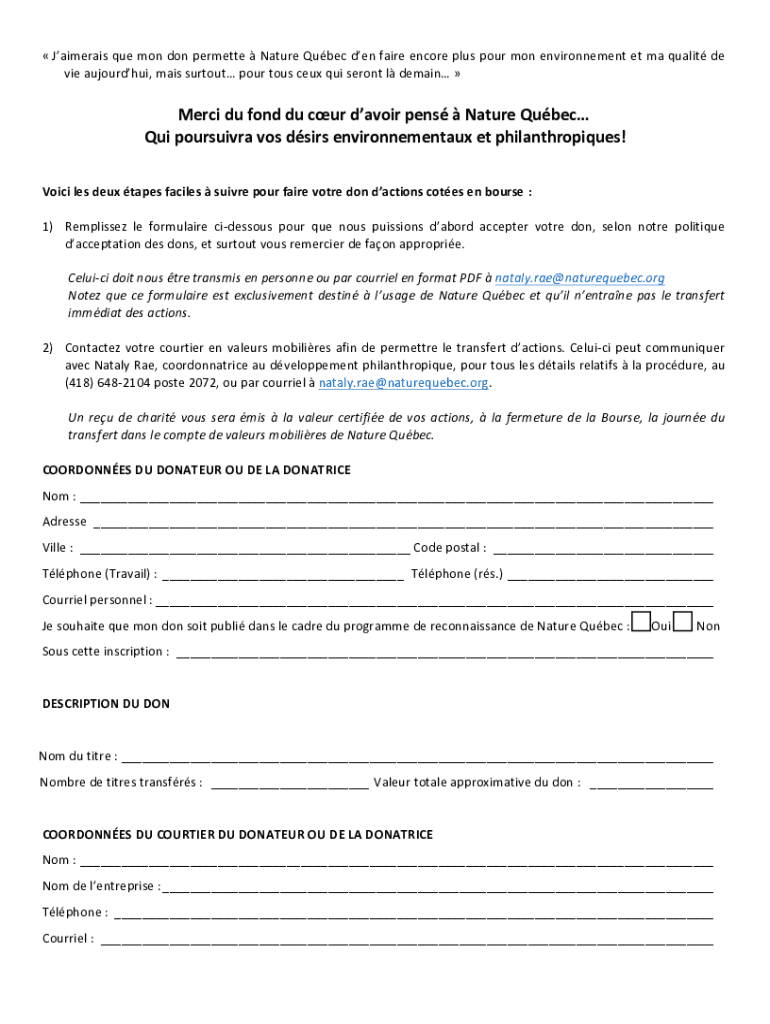 Get the free NCC: Don de titres cots en bourse - Nature Conservancy of Canada