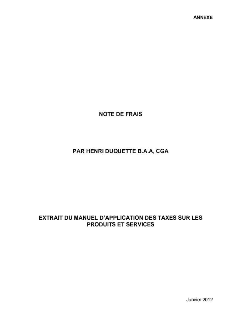 ANNEXENOTE DE FRASER HENRI COQUETTE B.A.A, CGAEXTRAIT DU MANUEL APPLICATION DES TAXES SUR LES PRODUCTS ET SERVICESJanvier 2012NOTES DE FRAIL RECLAMATIONS DES CTI ET DES Tiles formularies joints sapient