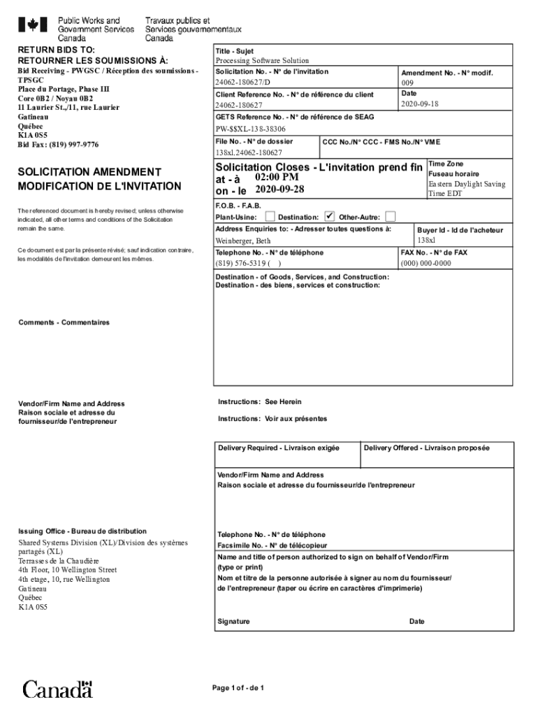 11RETURN BIDS TO: RETURNER LES COMMISSIONS : Bid Receiving PW GSC / Reception DES sou missions TP SGC Place du Portage, Phase III Core 0B2 / Royal 0B2 11 Laurie St., */11, rue Laurie Gatineau Quebec