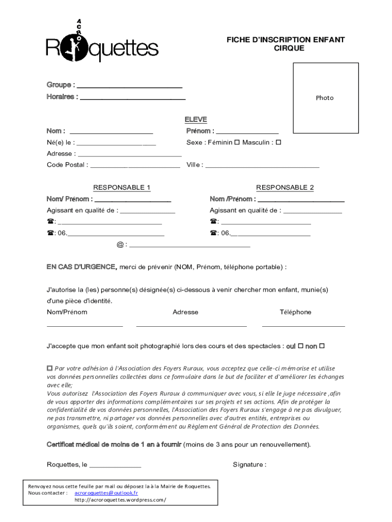 Get the free acroroquettes.files.wordpress.com 2019 05FICHE D'INSCRIPTION ENFANT CIRQUE