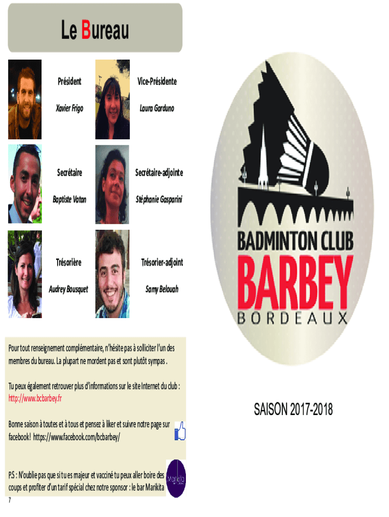 Le Bureau PrsidentVicePrsidenteXavier FrigoLaura GardunoSecrtaireSecrtaireadjointeBaptiste VatanStphanie GaspariniTrsorireTrsorieradjointAudrey BousquetSamy BelouahPour tout enslavement complementary,