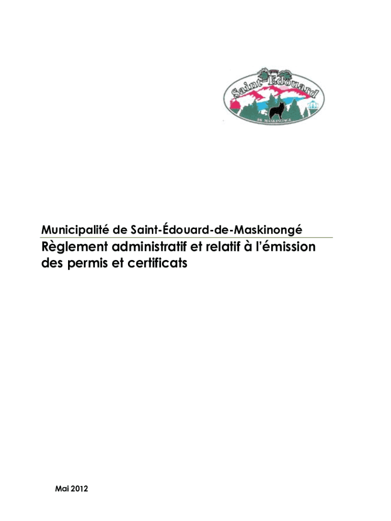 Municipality de SaintdouarddeMaskinongRglement administration ET related mission DES permit et certificatsMai 2012Rglement administration ET related aux permit ET certificate Element humor 2012189Date