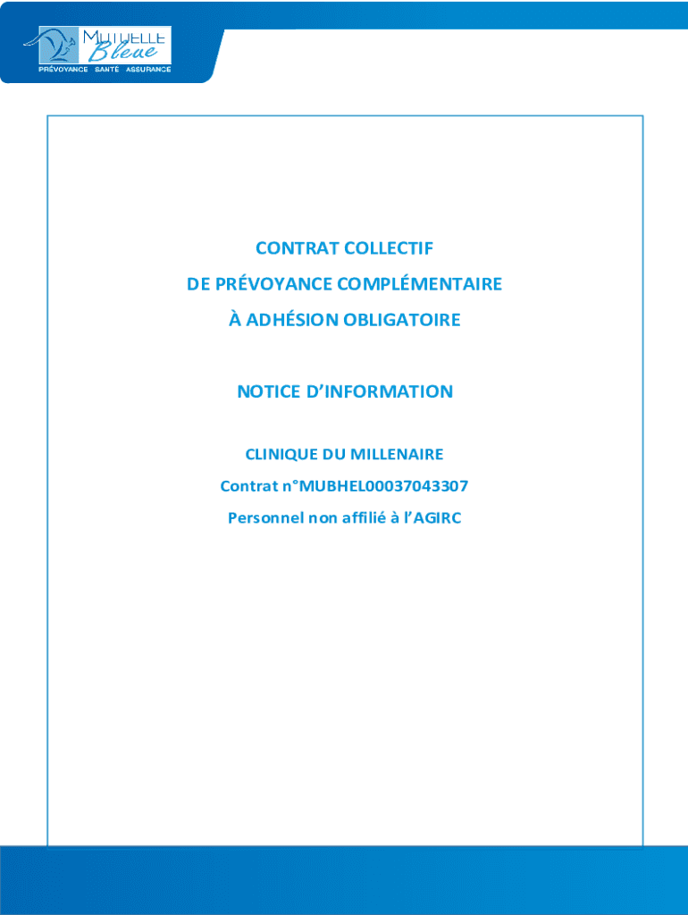 CONTRACT COLLECT IF DE PURVEYANCE COMPLEMENTARY ADHESION OBLIGATOIRENOTICE INFORMATION CLINIQUE DU MILLIONAIRE Contract nMUBHEL00037043307 Personnel non-affine lAGIRCCONTRAT COLLECT IF DE PURVEYANCE