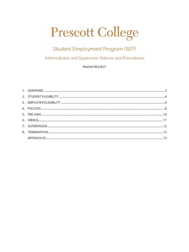 Student Employment Program (SEP) Administrator and Supervisor Policies and Procedures Revised 06/24/211. OVERVIEW .....................................................................................................................................................