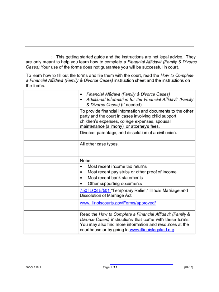 This getting started guide and the instructions are not legal advice. They are only meant to help you learn how to complete a Financial Affidavit (Family & Divorce Cases). Your use of the forms does